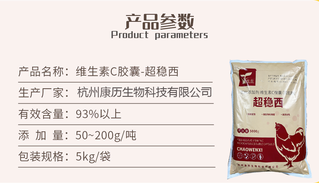超稳西-93%双层包被vc -缓解热应激 改善蛋壳--5kg/袋