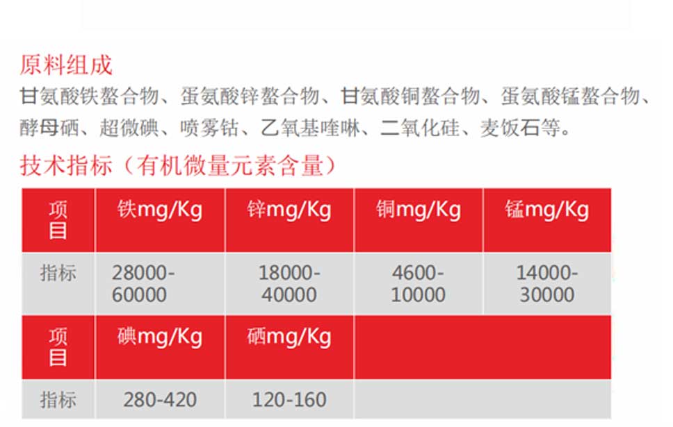 产品功能:提供有机微量元素营养