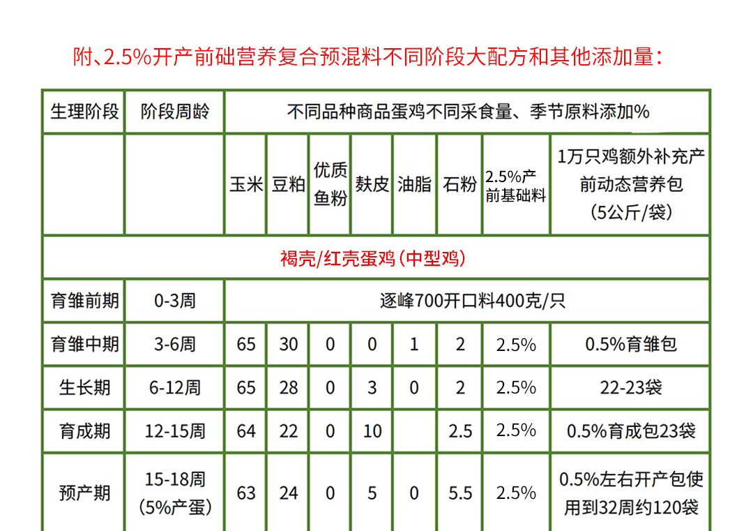 2.5%开产前基础料 - 25kg- 预混料